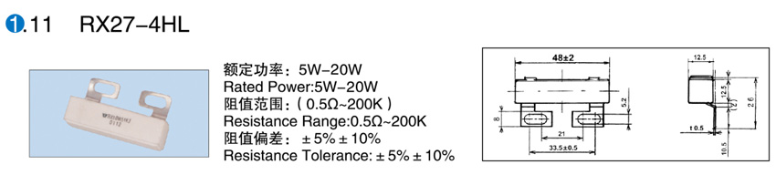 > RX27-4HL陶瓷外殼線繞電阻器